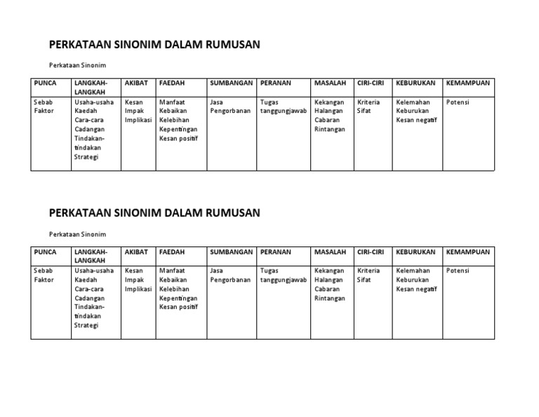 Perkataan Sinonim Dalam Rumusan Pdf